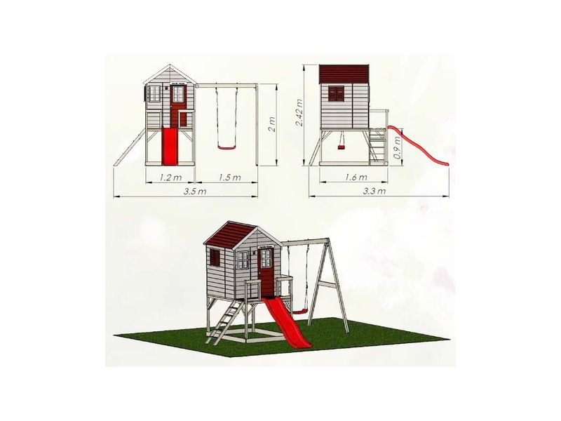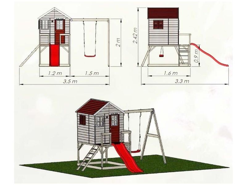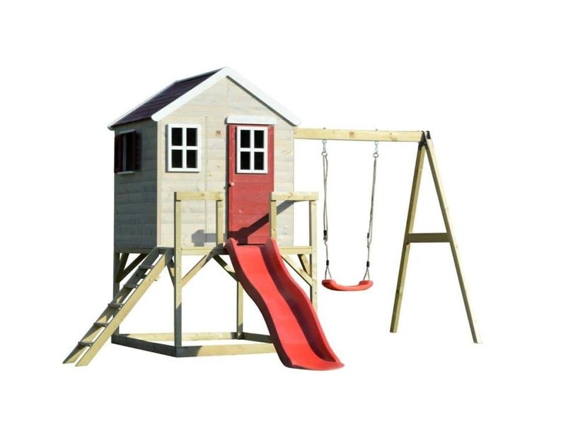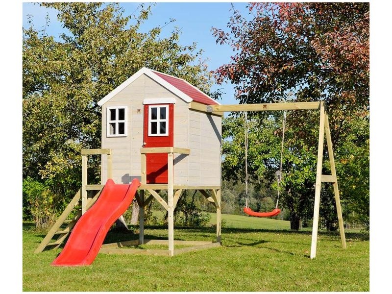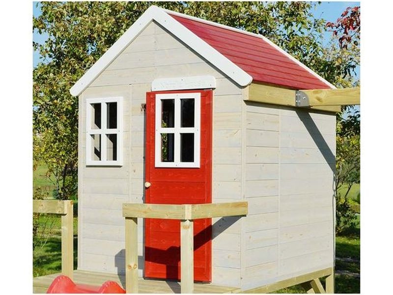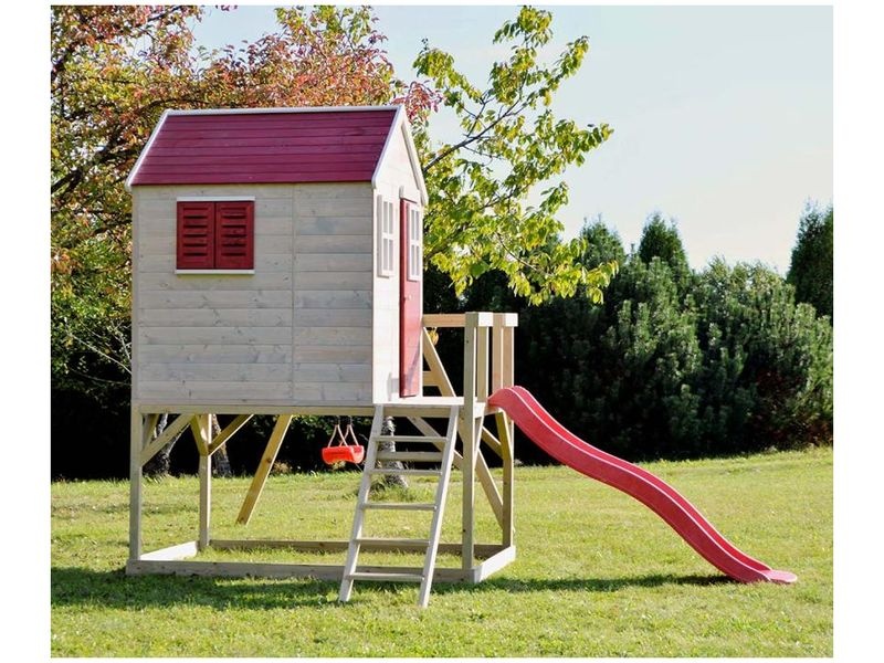 Domeček je vybaven skluzavkou (ke které vede žebřík) a krytým pískovištěm, které nabízí nekonečné možnosti pro dovádění a hry. Pískoviště je chráněno domečkem nad ním, což umožňuje jeho použití i za mírného deště. Vaše dítě si může v domečku vytvořit tajnou skrýš nebo se zapojit do různých kreativních her.