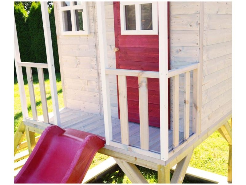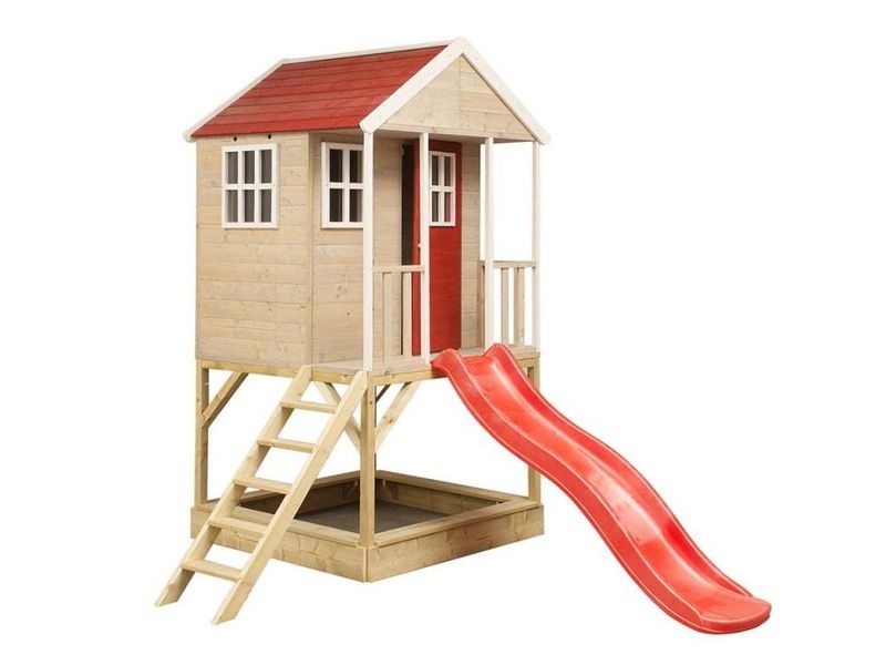 Domeček je vybaven skluzavkou (ke které vede žebřík) a krytým pískovištěm, které nabízí nekonečné možnosti pro dovádění a hry. Pískoviště je chráněno domečkem nad ním, což umožňuje jeho použití i za mírného deště. Vaše dítě si může v domečku vytvořit tajnou skrýš nebo se zapojit do různých kreativních her.