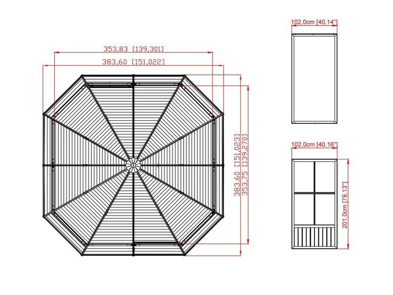 Altán nemá skleněnou ani plastovou výplň oken. Výrobce zasklení pro tento model nevyrábí. Altán je ze své podstaty lehká a vzdušná zahradní stavba, která nemá zasklené stěny ani okenní výplně. Součástí balení jsou však moskytiéry proti komárům.