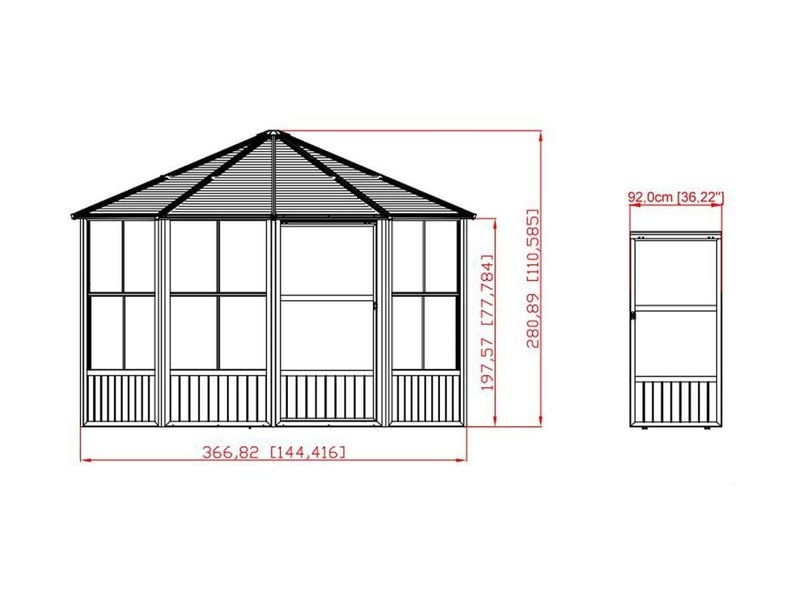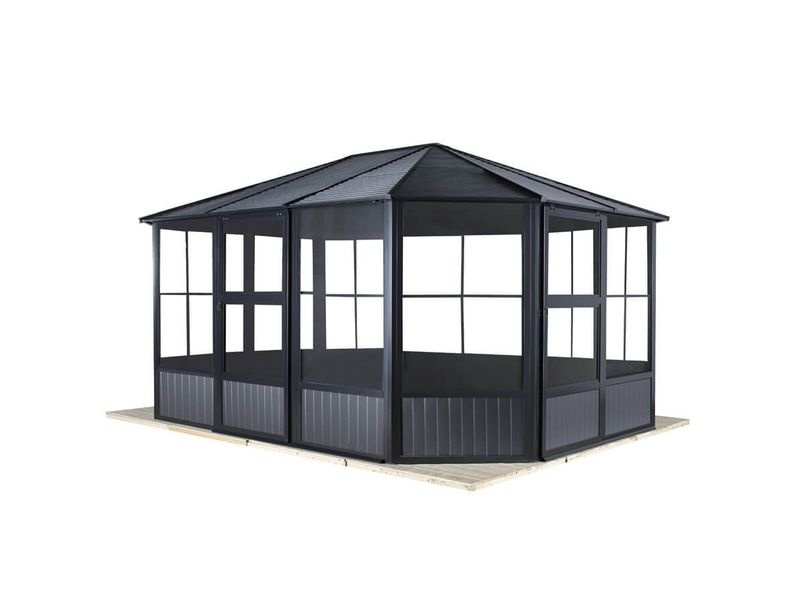 Zahradní hliníkový altán je vyroben z těch nejkvalitnějších materiálů, které jsou odolné vůči korozi. Konstrukce je z odolného práškově lakovaného hliníku. Je spojována nerezovými ocelovými šrouby, čímž tvoří velmi stabilní kostru.