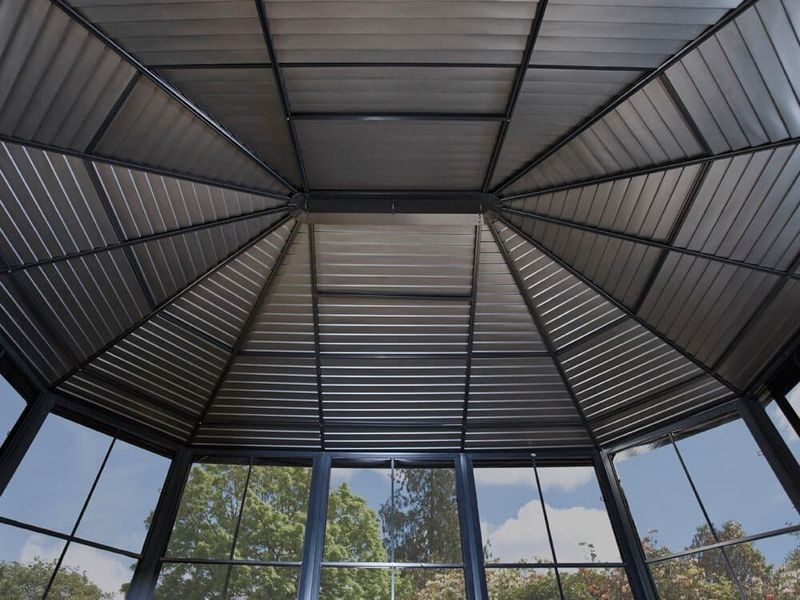 Střecha altánu je vyrobena z kvalitní pozinkované oceli. Zaručuje obzvláště vysokou stabilitu a snadno odolává povětrnostním podmínkám, jako je déšť, sníh nebo slunce. Díky tomu je možné altán nechat na svém místě po celý rok.