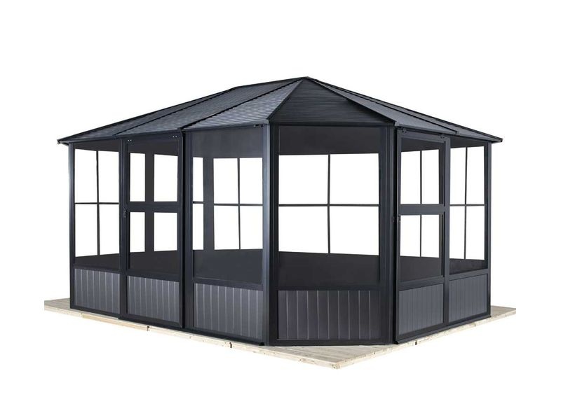 Zahradní hliníkový altán je vyroben z těch nejkvalitnějších materiálů, které jsou odolné vůči korozi. Konstrukce je z odolného práškově lakovaného hliníku. Je spojována nerezovými ocelovými šrouby, čímž tvoří velmi stabilní kostru.