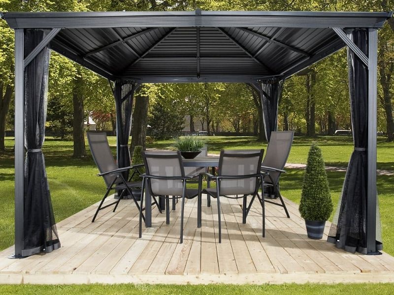 Hliníkový altán vám vytvoří příjemné místo pro odpočinek hned vedle vašeho domu nebo kdekoliv na zahradě.