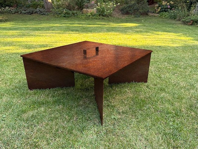 Díky konstrukci z cortenu je možné v ohništi bezpečně pálit dřevo bez roštu. Pro grilování lze dokoupit ocelovou plotnu nebo nerezový grilovací rošt.