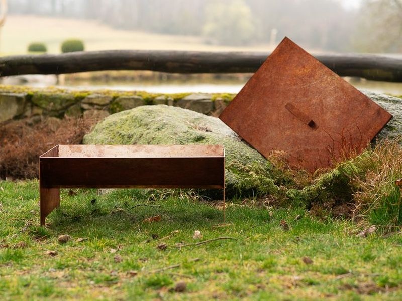 Díky konstrukci z cortenu je možné v ohništi bezpečně pálit dřevo bez roštu. Pro grilování lze dokoupit ocelovou plotnu nebo nerezový grilovací rošt.