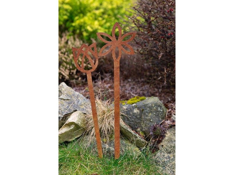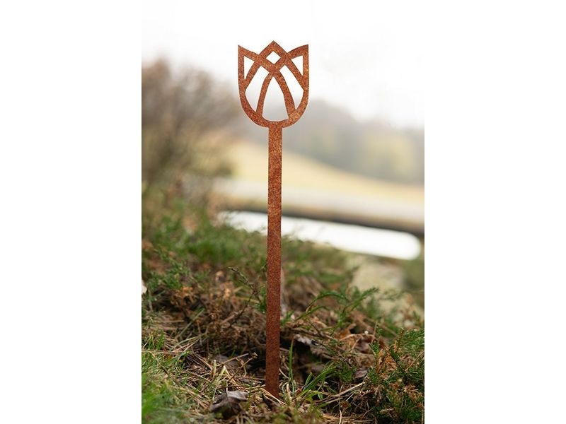 Elegantní tvar cortenového tulipánu připomíná krásu prvních jarních květů.