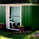 Pozor – plechový zahradní domek má v reálu kombinaci barev zelená a slovnová kost. Reálné odstíny mohou být lehce odlišné od barvy na obrázcích (velmi záleží na nastavení barev na monitoru).