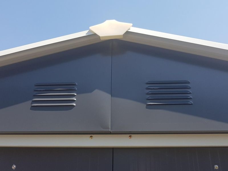 Kvalitní materiál s povrchovou úpravou – elektrolyticky pozinkovaný plech s žárově nanesenou barvou. Sedlová střecha, čelní posuvné dveře. Možnost uzamčení (zámek není obsahem dodávky).