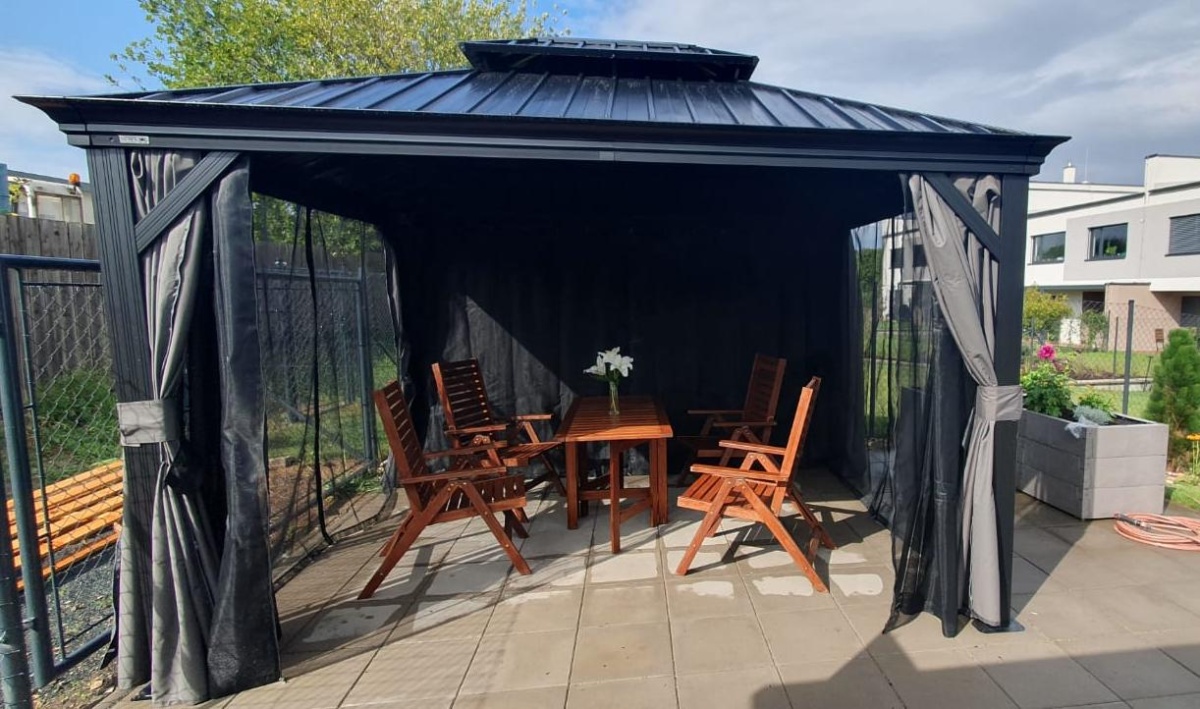 Hliníkový altán vám vytvoří příjemné a útulné místo pro odpočinek hned vedle vašeho domu nebo kdekoliv na zahradě. Je opatřen moskytiérou, která vás během vlahých letních večerů ochrání před komáry.