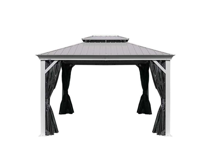 Zahradní hliníkový altán od nejznámějšího kanadského výrobce přístřešků, je vyrobena z těch nejkvalitnějších materiálů, které jsou odolné vůči korozi. Konstrukce je z odolného práškově lakovaného hliníku. Jednotlivé sloupky jsou mají tloušťku 12 cm, jsou spojované nerezovými ocelovými šrouby, čímž tvoří velmi stabilní konstrukci.