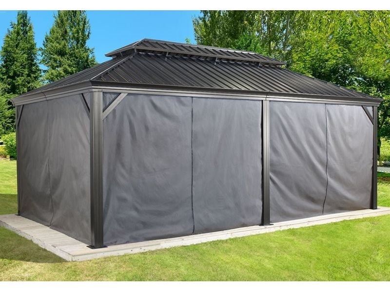 Součástí altánu jsou nylonové moskytiéry. Je možné dokoupit polyesterové závěsy. Oboje lze díky systému dvojitých kolejnic připevnit k sobě. Na rozdíl od jiných modelů se nejedná o jedno nebo druhé, ale moskytiéru i závěsy lze používat současně.