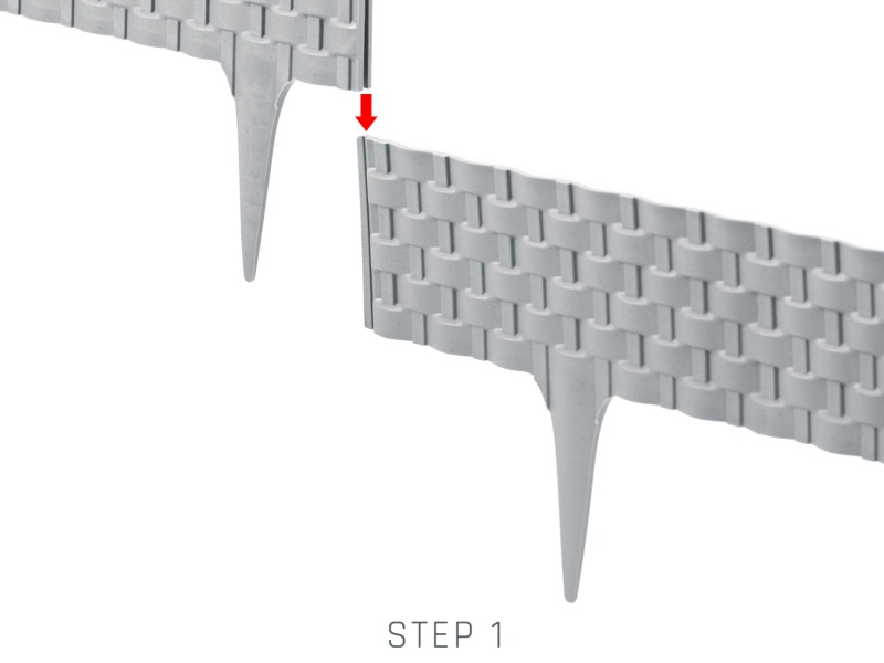 2. Pro napojení dalšího dílu využijte předpřipravených zámků na okrajích obrubníku. Stačí palisádu zaklapnout do sebe a vytvoříte libovolně dlouhé obruby záhonů.