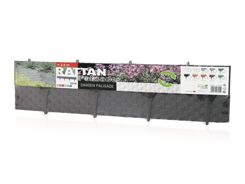 Ratanový palisádový obrubník bude stylovým doplňkem vaší zahrady. Zahradní palisáda se využívá pro oddělení trávníku od stezek, chodníčků a okrasných záhonů. Můžete ji ohýbat do libovolných oblouků. Trvanlivý plastový materiál odolává UV záření, mrazu i větru. Stylový design imitující přírodní ratan je k nerozeznání od skutečného ratanu. Instalaci palisády zvládnete svépomocí.