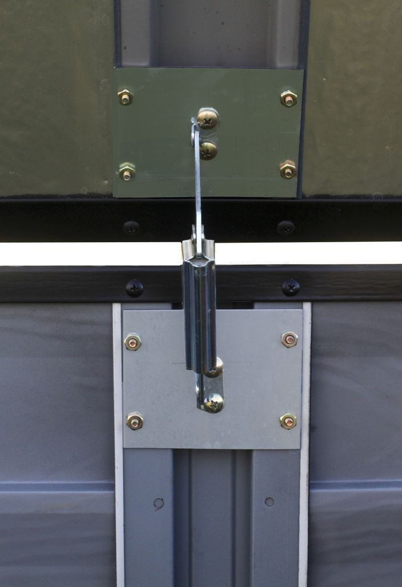 Zahradní box má nosnou kovovou konstrukci. Stěny, střecha a dveře jsou vyrobeny z galvanizované oceli. Vysoce kvalitní povrchová úprava – práškově lakováno. Box je vybaven dvojitými zamykatelnými dveřmi na pantech. Samozajišťovací zarážky na víku pohodlně udrží víko v otevřené poloze, což značně usnadňuje obsluhu boxu.