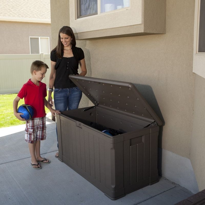 Své využití nalezne i jako stůl pro zahradní párty. Box můžete uzamknout proti nenechavcům visacím zámkem (není obsahem dodávky). Zahradní box z americké výroby nabízí především rozměrný úložný prostor, jednoduchou montáž a atraktivní design.