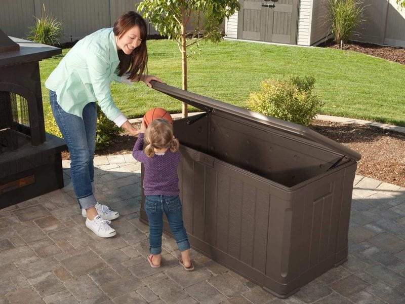 Své využití nalezne i jako stůl pro zahradní párty. Box můžete uzamknout proti nenechavcům visacím zámkem (není obsahem dodávky). Zahradní box z americké výroby nabízí především rozměrný úložný prostor, jednoduchou montáž a atraktivní design.