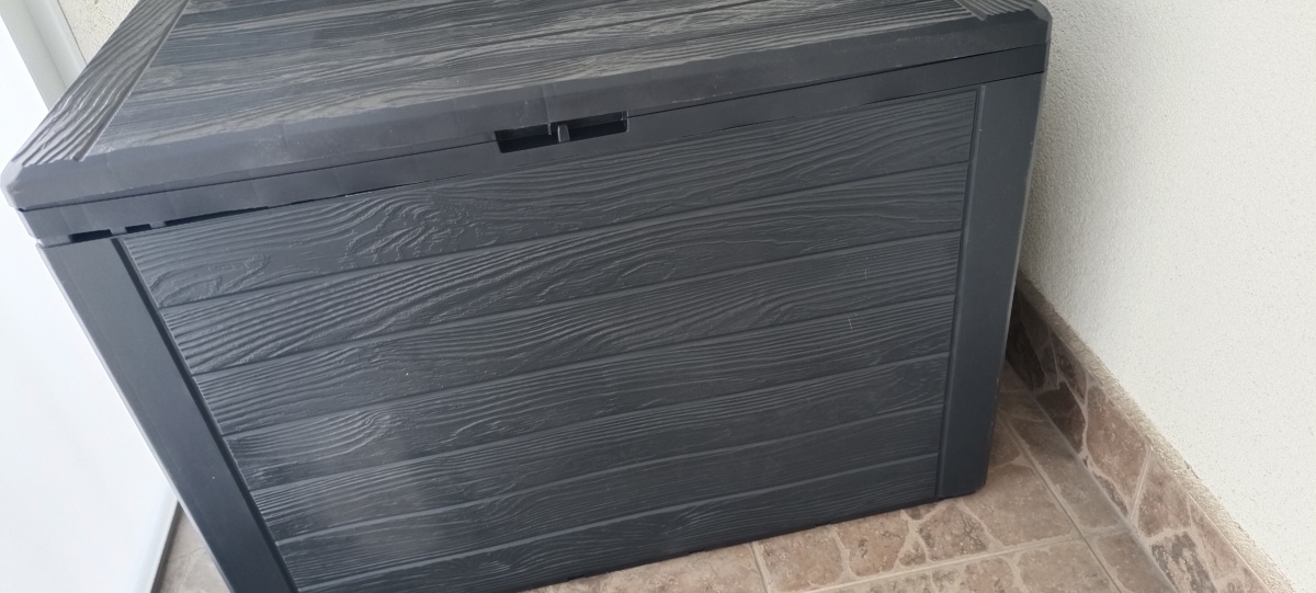 Box na zahradu je vyrobený z plastu, který odolává běžným klimatickým vlivům (vítr, UV záření).