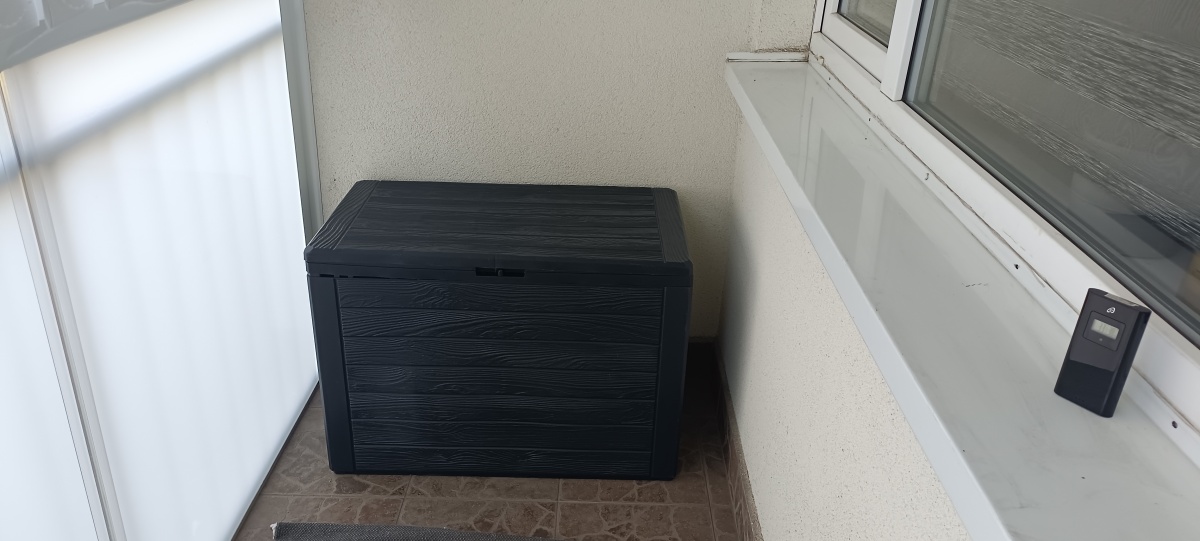 Box na zahradu je vyrobený z plastu, který odolává běžným klimatickým vlivům (vítr, UV záření).