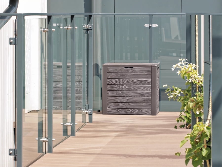Úložný box představuje nejen funkční, ale také pohledový doplněk zahrady. Úložný boxu v imitaci dřeva působí na zahradě nenápadně a nenaruší estetický dojem z vašich venkovních prostor.