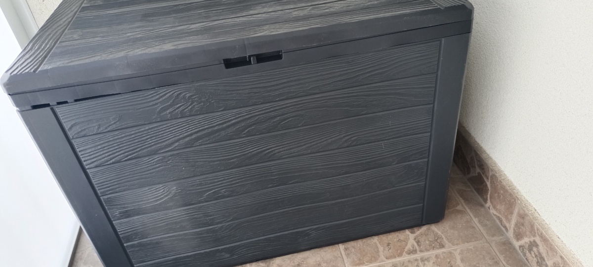 Box na zahradu je vyrobený z plastu, který odolává běžným klimatickým vlivům (vítr, UV záření).