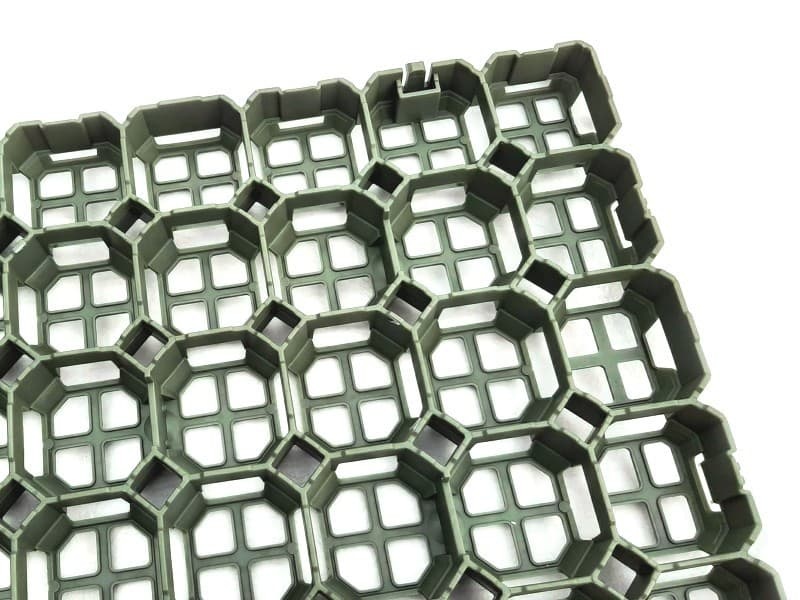 Plastová zatravňovací tvárnice pro vyplnění kamenivem (případně zeminou s travním osivem). Ideální pro zpevnění příjezdové cesty či parkovacího stání pro vozidla do 3,5 tuny. Struktura buněk zabraňuje migraci štěrku – proto je dlažba vhodná zejména pro štěrkové plochy. Propustnost vody: 87 %. Recyklovatelný výrobek.