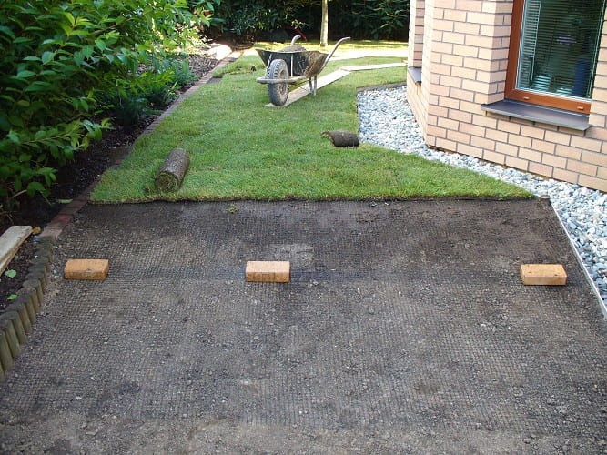 Pokud instalujete travní koberec, síť se umisťuje přímo pod něj. V případě tradičního zatravňování je nutné na síť navézt 8 cm silnou vrstvu humusu.