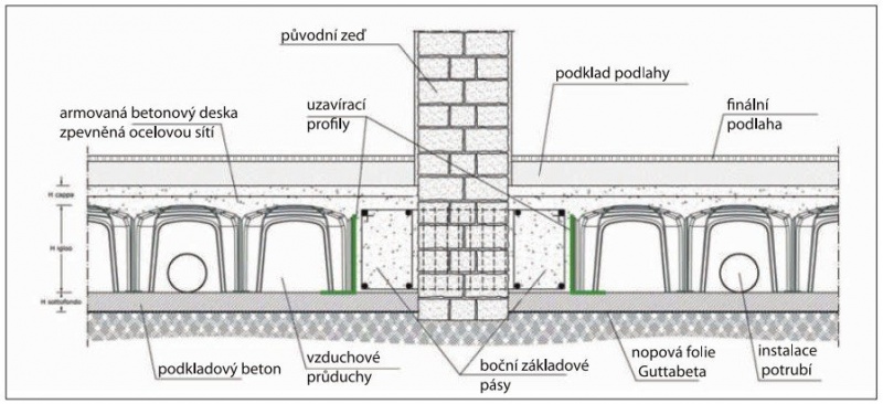 Obr. Schéma proudění vzduchu u ztraceného bednění Guttadrytek
